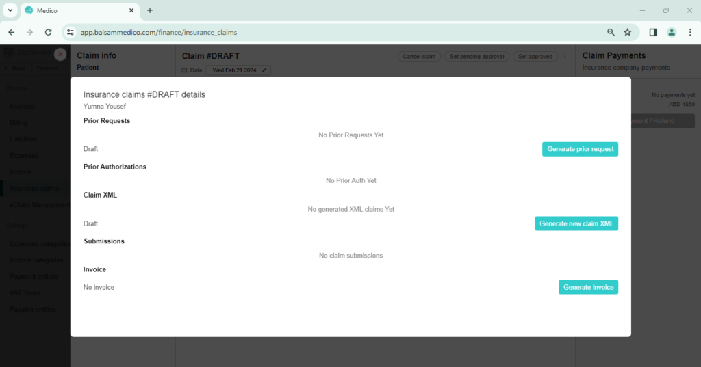 Once the doctor adds the treatment to the patient, and the patient has an insurance plan, then automatically a claim is drafted.